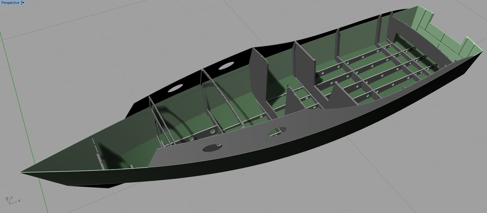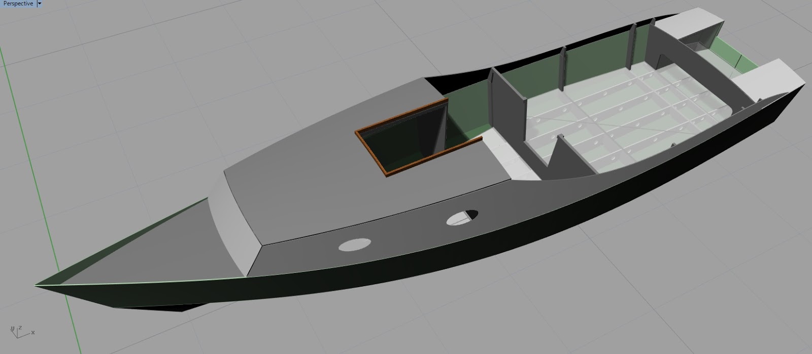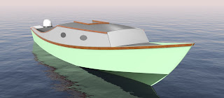 As part of my attempt to learn how to use a 3D CAD program, I have been using my Three Brothers powerboat design as an exercise. Although the design is still under development, I thought that some people may be interested in seeing a stage-by-stage stitch-and-glue assembly sequence.