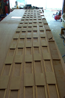 Here is a plank pattern laid on a single 8ft x 4ft sheet of plywood in a manner which produces minimum wastage. The pattern shown uses diagonal truss-type bracing, but I often use rectangles of thin MDF hot-melt glued to achieve the same result more quickly. See earlier photo above. Trace accurately around the pattern with a sharp pencil or a fine ball-point pen.